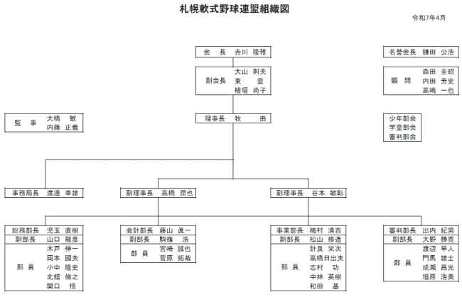 活動内容 | ・全日本軟式野球連盟主催の札幌支部大会運営(天皇賜杯、高松宮賜杯、高円宮賜杯、東日本) ・日本体育協会主催の軟式野球札幌支部大会運営 ・北海道軟式野球連盟主催のブロック大会及び札幌支部大会運営 ・北海道軟式野球連盟主催の他支部大会への審判員派遣(審判交流) ・札幌市が主催する市民体育(軟式野球)大会運営 ・札幌軟式野球連盟主催の大会運営(たそがれ野球、A級選手権、BC級選手権、フレッシュジュニア) ・他の野球団体から審判要請を受けた試合の審判員派遣 ・各企業者が主催する大会で審判依頼を受けた試合の審判員派遣 ・各野球団体主催大会の後援 ・北海道軟式野球連盟への役員派遣(理事、評議委員、審判技術員) ・札幌市スポーツ協会、加盟協議団体としての役員派遣(理事、評議委員、普及委員、競技向上委員) ・審判員の技術向上を目的とした講習会の実施 |